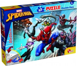 Oboustranné puzzle SPIDER-MAN od značky Lisciani nabízí skvělou kombinaci skládání a tvoření. Po sestavení obrázku na jedné straně děti otočí dílky a na druhé straně mohou vlastními barvami oživit komiksový svět svého hrdiny. Formát 35 × 25 cm a 48 dílků je ideální pro malé skládače.