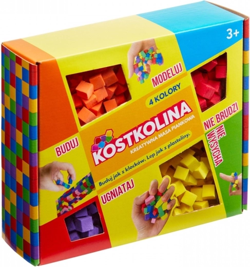 Kostkolina žlutá v sadě se 4 barvami je ideální pro malé tvůrce. Spojujte drobné kostičky do originálních tvarů, stavějte konstrukce jako z kostiček a tvořte vlastní svět plný barev. Materiál je lehký, nadýchaný a příjemný do ruky, takže modelování je snadné a zábavné.