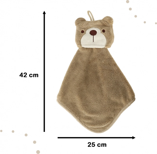 Tenhle dětský ručník s motivem medvěda je navržen speciálně pro děti. Jeho kompaktní rozměry 25 x 42 cm jsou ideální pro malé dětské ruce, což zajišťuje snadnou manipulaci a použití. Ručník je vybaven praktickou poutek pro zavěšení, což usnadňuje jeho umístění na háček na dosah rukou dítěte.
