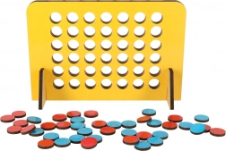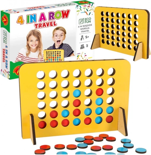 Zahrajte si populární hru Čtyři v řadě, nyní ve cestovní verzi, a zažijte zábavu kdykoliv a kdekoliv. Cílem hry je spojit čtyři stejně barevné žetony v jednom řádku horizontálně, vertikálně nebo diagonálně. Dřevěná deska s otvory umožňuje snadné vkládání žetonů.