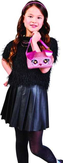 Nechte styl mluvit za vás. PURSE PETS štěňátko kombinuje roztomilý kawaii vzhled s praktickými funkcemi. Stisknutím čumáčku snadno zvolíte barvu podsvícení očí nebo spustíte duhový režim, který upoutá pozornost na každý krok. Růžový glitrový povrch, psí ouška a pop‑art oči z ní dělají nepřehlédnutelný doplněk.