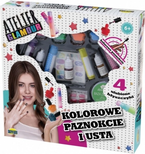 Objevte kreativní svět líčení s touto sadou na líčení od Atelier Glamour, která zahrnuje barevné laky na nehty a živé rtěnky k doladění vašeho vzhledu.
