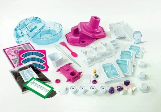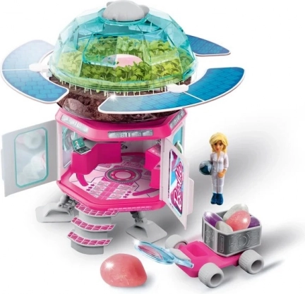 Tato inspirativní vědecká sada přenese děti do světa kosmických objevů. Postaví si speciální základnu pro experimenty s rostlinami a analýzou půdy, složí mini rover pro průzkum neznámých planet a ozdobí modely pomocí samolepek. Nechybí ani malý model astronautky Barbie, která provází děti na jejich výpravách za poznáním.