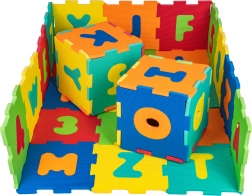Tato edukativní pěnová podložka pro děti od 10 měsíců kombinuje zábavu a bezpečí. Každý dílek je z měkké a příjemné EVA pěny, snadno se čistí a díky protiskluzové struktuře drží na místě. Vyjímatelné písmena A–Z a číslice 0–9 motivují k objevování tvarů, barev a prvních slov i počítání.