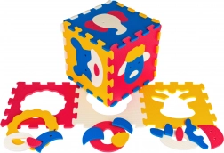 Středové díly ve tvaru zvířátek lze vyjmout a skládat do otvorů nebo tvořit prostorové objekty, například kostku. Zábava, která rozvíjí jemnou motoriku a představivost.