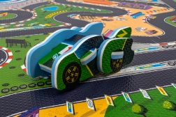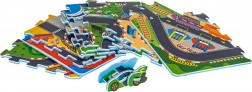 Hotová podložka o rozměru cca 92 × 92 cm skvěle poslouží jako hrací plocha pro autíčka a zároveň jako tepelná izolace od podlahy. V balení najdete také 6 dílů k sestavení roztomilé závodní formule, která posune závodní zábavu na další úroveň.