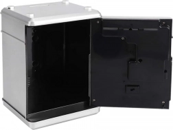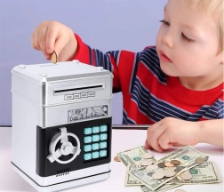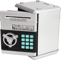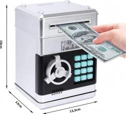 Tento elektronický trezor vypadá jako skutečný trezor a je ideální pro uchovávání mincí a bankovek. S kódovým zámkem a světelnými kontrolkami je nejen užitečným pomocníkem, ale také skvělou zábavou pro děti. Trezor disponuje místem pro vkládání jak mincí, tak bankovek, a je opatřen podsvícenými tlačítky.