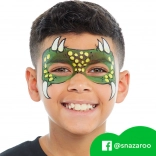 Proměňte se během chvilky v draka nebo dinosaura. Tato kompletní sada Snazaroo nabízí 8 sytých a dlouhotrvajících barev, které se snadno nanášejí štětcem nebo houbičkou. Díky přiloženým šablonám a obrázkovému návodu vytvoří efektní motivy i začátečníci.