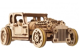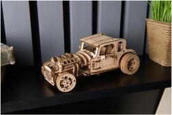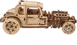 Model je navržen tak, aby bavil při stavbě i při jízdě. Po pečlivém „rozběhnutí“ podvozku si užijete hladký chod převodů a dynamický rozjezd. V přírodním dřevě vypadá šik, ale klidně si jej můžete nabarvit podle vlastního stylu. Skvělý dárek pro fandy hot rodů, mechaniky a designu.