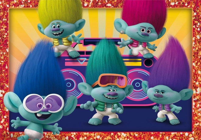 Tato sada progresivních puzzle přináší čtyři obrázky s postavičkami z filmu TROLLOVÉ v různé obtížnosti. Jak roste počet dílků, zmenšuje se jejich velikost, takže děti postupně rozvíjejí skládací dovednosti a sebevědomí. Kvalitní tisk a pevné dílky zajišťují dlouhou životnost i po mnoha poskládáních.