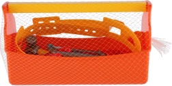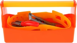Praktická dětská sada nářadí v oranžové bedýnce s uchem a opaskem na nářadí potěší všechny malé opraváře. Obsahuje 9 lehkých plastových dílů, které rozvíjejí jemnou motoriku, představivost a technické myšlení. Bedýnka zajišťuje snadné přenášení a přehledné uložení všech nástrojů. Vhodné pro děti od 3 let.