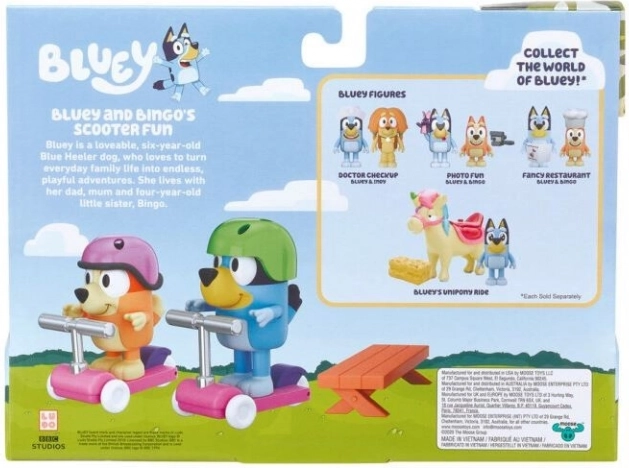 Zažijte zábavu s herní sadou Bluey - Jízda na koloběžce, která přivádí k životu postavičky Bluey a Bingo z populárního animovaného seriálu. Tato sada poskytuje dětem možnost znovu prožívat jejich oblíbené scény a zároveň rozvíjet jejich kreativitu. Obsahuje dvě pohyblivé figurky, dvě koloběžky a dvě bezpečnostní přilby.