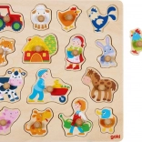 Dřevěná vkládačka Goki s motivem „Život na farmě“ je ideální hračka pro malé objevitele. Díky praktickým úchytkám se dětem lépe manipuluje s dílky, které přesně zapadají do předem určených výřezů. Pevná dřevěná podložka a rámečky zajišťují, že dílky drží tam, kde mají, a skládání je intuitivní a zábavné.