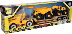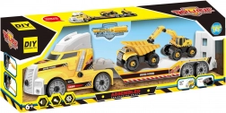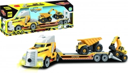 Součástí balení jsou dva 16cm stavební stroje – sklápěč a bagr – které lze převážet na návěsu. Volná kola zajišťují plynulou jízdu po různých površích a robustní zpracování je ideální pro každodenní hraní doma i na zahradě.