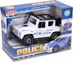 Šroubovací policejní džíp je ideální hračkou pro děti, které milují auta a tvoření. Díky přiloženému nářadí mohou malí mechanici vůz snadno rozebrat a znovu složit, čímž si trénují zručnost a logické myšlení. Volná kola zajišťují plynulý pohyb při hraní.
