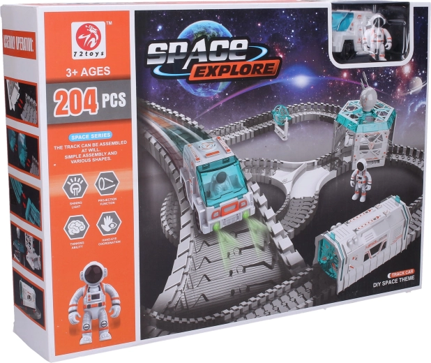 Objevte dobrodružství ve vesmíru s touto kosmickou závodní dráhou o rozměrech 85 × 75 × 32 cm. Součástí je auto, figurka kosmonauta a funkční projektor se světelnými efekty. Dráhu lze libovolně sestavit do různých tvarů, takže zábava nikdy nekončí.