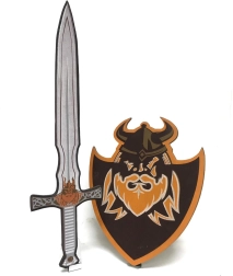 Zábavná a bezpečná sada pro malé bojovníky: pěnový meč a štít s motivem Viking. Díky měkkému materiálu je hra bezpečná, lehká a ideální jako doplněk ke karnevalovému kostýmu nebo pro domácí dobrodružství.