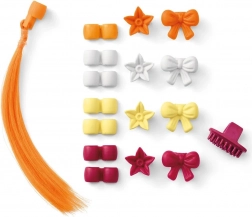 - Spinky a ozdoby do hřívy (korálky, květiny, mašličky), malý prstový kartáček, extra oranžový pramen vlasů