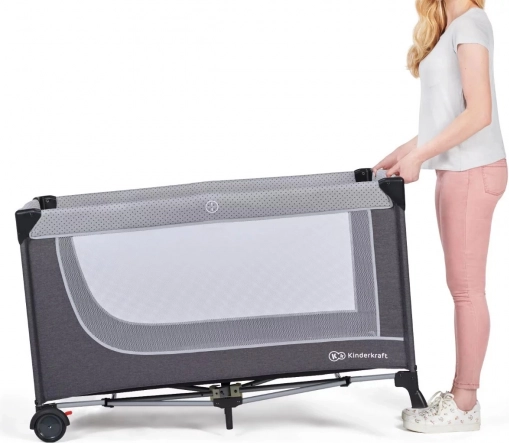 KINDERKRAFT Leody Grey Premium je moderní cestovní postýlka, která se bleskově rozkládá a skládá do kompaktní velikosti. Nabízí zavěšené dno ve dvou výškových úrovních – horní pro novorozence a spodní pro aktivnější děti. Tři síťované strany zajišťují stálý přehled o dítěti i perfektní ventilaci. Ocelový rám dodává konstrukci stabilitu a dvojitá pojistka proti samovolnému složení zvyšuje bezpečí při používání.