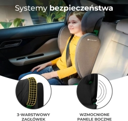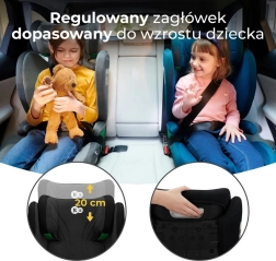 Záhlavník s H-GUARD SYSTEM má třívrstvou konstrukci s paměťovou pěnou a lze jej nastavit jednou rukou v 10 úrovních. Stabilní montáž zajišťují ISOFIX konektory s indikátory správného uchycení, případně montáž tříbodovým bezpečnostním pásem. Sedačka je určena pro instalaci po směru jízdy a nabízí komfortní polstrování pro delší cesty.