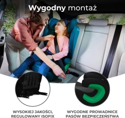 Rychlá a jistá montáž pomocí ISOFIX s vizuálními indikátory správného upevnění. Lze uchytit i tříbodovým pásem.