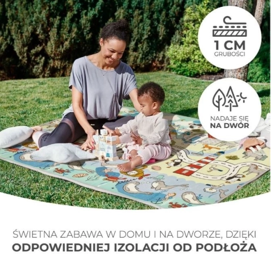 Díky kvalitní pěnové vrstvě skvěle izoluje od chladu podlahy, tlumí drobné pády a poskytuje pohodlí i při delším hraní. Protiskluzová úprava zvyšuje stabilitu při učení plazení a vstávání. Podložka se složí během pár sekund a v přiložené tašce ji snadno vezmete na terasu, zahradu nebo piknik.