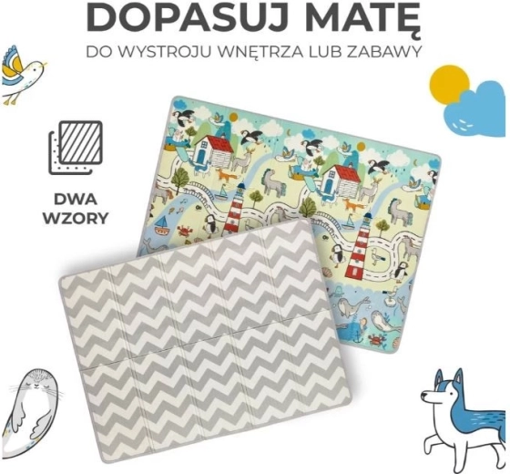 Objevte praktickou a stylovou hrací podložku MATTY 2 od značky Kinderkraft – oboustrannou, měkkou a bezpečnou plochu pro hraní, odpočinek i první krůčky. Jedna strana nabízí hravý, podnětný motiv pro rozvoj fantazie, druhá tlumený geometrický design ladící s interiérem. Díky tloušťce a skvělé izolaci ochrání před chladem podlahy, má protiskluzovou vrstvu a rychlé skládání do přiložené tašky pro snadné přenášení doma i venku.