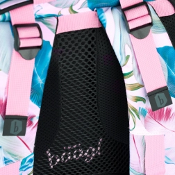 Ergonomická záda s nastavitelnými popruhy a reflexními prvky pro větší pohodlí a bezpečnost.