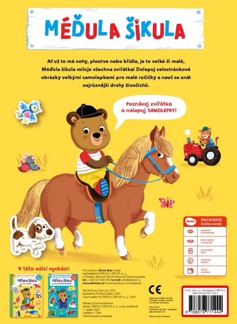 Samolepková knížka 'Méďula Šikula: Poznáváme zvířátka' je skvělým nástrojem pro rozvoj dětské fantazie a poznání. Díky přívětivému průvodci, Méďulovi Šikulovi, děti objevují svět zvířat: