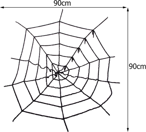 Umělá černá halloweenská pavučina o rozměru 90 × 90 cm okamžitě vykouzlí strašidelnou atmosféru. Lehká, snadná instalace a univerzální použití na zeď, okno, strop i dveře. Kvalitní textilní materiál pro opakované použití.