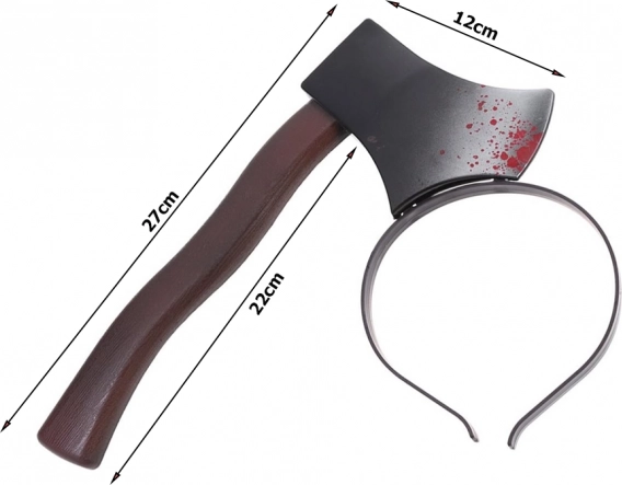 Tento chytrý kostýmový doplněk vytváří optickou iluzi, že vám skrz hlavu trčí sekera – efekt je přitom zcela bezpečný a mimořádně působivý. Díky lehké konstrukci a pružné čelence se příjemně nosí i po delší dobu a spolehlivě drží na místě.