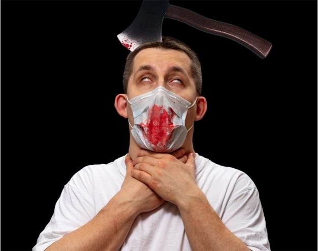 Dva konce „sekery“ připevněné k čelence vytvářejí překvapivě realistický efekt bez kapky krve. Ideální pro hororový look, který upoutá pozornost.