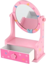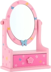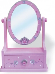Tato dřevěná šperkovnice v pastelových barvách s nastavitelným zrcadlem je perfektní volbou pro malé dámy, které chtějí mít své šperky a cennosti pečlivě uložené.