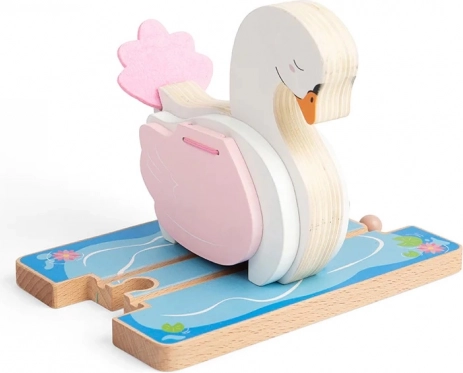 Kouzelný dřevěný tunel ve tvaru labutě promění každou vláčkodráhu v pohádkové jezírko s vlnkami a lekníny. Otevíratelná křídla vytvoří průjezd pro vláček, zatímco kvalitní dřevěné provedení a kompatibilita s většinou dřevěných železnic zaručí spoustu zábavy. Podporuje představivost, jemnou motoriku a koordinaci. Vláček není součástí balení.