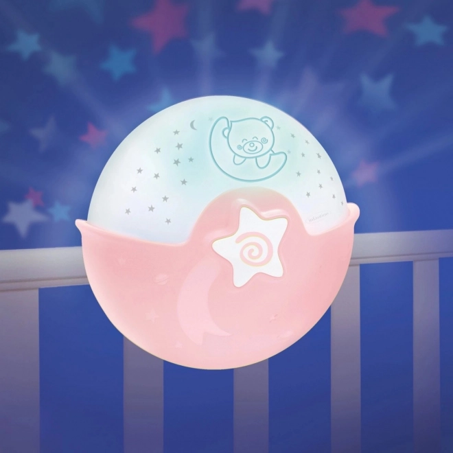 Hledáte spolehlivou pomůcku pro klidné večery a lepší spánek vašeho miminka? INFANTINO 2v1 růžový projektor a noční lampička roste s dítětem a snadno se přizpůsobí vašim potřebám – od montáže na postýlku až po volně stojící lampičku na nočním stolku. Jemná projekce barevných hvězdiček a pečlivě zvolené melodie vytvářejí uklidňující atmosféru pro usínání.