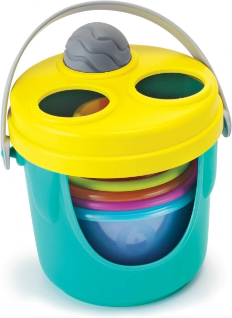 Všech 14 částí pohodlně uložíte do kbelíku s víkem a rukojetí. Po hraní je rychle uklizeno a hračka je připravena na cesty.