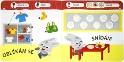Knížka Malý zajíček: můj den je ideální pro první učení předškoláků. Děti se zábavně seznámí s tím, co se děje ráno, během učení a hry i večer před spaním. Díky aktivitám s omalovánkami, spojováním a samolepkami si procvičí jemnou motoriku, soustředění a logické myšlení.