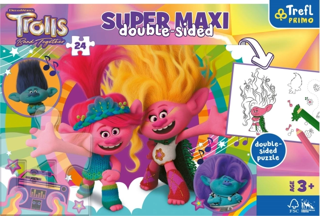 Tato 3v1 sada od TREFL přináší dětem spoustu radosti a tvoření. Na jedné straně najdou barevný motiv z filmu Trollové 3, na druhé straně černobílou omalovánku a zábavnou aktivitu ke hraní. Velké dílky jsou přizpůsobené dětským ručkám a podporují trpělivost i soustředění.