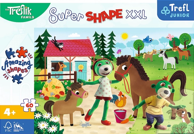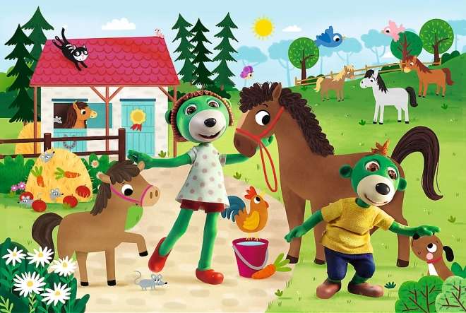Zábavné dětské puzzle s motivem TREFLÍKŮ na koňské farmě potěší všechny malé milovníky skládaček. Velké XXL dílky jsou snadno uchopitelné a ideální pro děti. Po složení vznikne obrázek o rozměru 60 × 40 cm, který rozvíjí motoriku, trpělivost a logické myšlení.