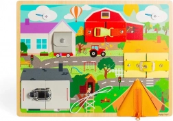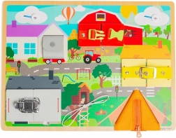 Objevte zábavnou a vzdělávací hračku pro děti od 3 let – motorickou desku s různými zámky, přezkami a zipy, která rozvíjí jemnou motoriku, koordinaci ruka-oko a praktické dovednosti. Každé otevření odhalí skrytou scénu a podněcuje kreativitu a zvídavost. Vyrobeno z dřeva s certifikací FSC pro šetrnost k přírodě.