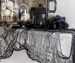 Jemná, síťovaná struktura a záměrné otvory přináší autentický vzhled staré pavučiny – ideální pro Halloween a scénické dekorace.