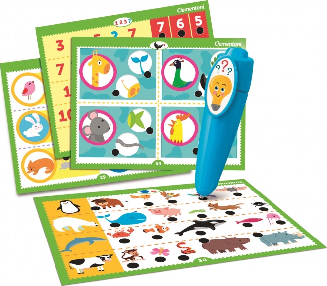 Tato chytrá sada spojuje zábavu s učením. Děti si procvičí poznávání zvířat, čísel, množství a hodnot, vytváří logické asociace a rozvíjejí vnímání okolního světa. Interaktivní pero ihned rozpozná správné odpovědi a rozsvícením světýlka motivuje k dalšímu objevování.