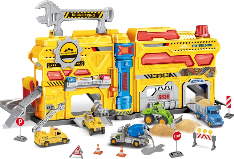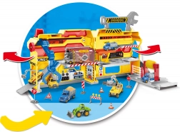 Zábavná a snadno přenosná stavební stanice pro malé stavitele nabízí světelné a zvukové efekty, dva volně jedoucí modely aut a bohaté příslušenství. V balení najdete značky, nálepky a obrázkový návod pro jednoduché sestavení. Ideální dárek pro rozvoj fantazie a motoriky.