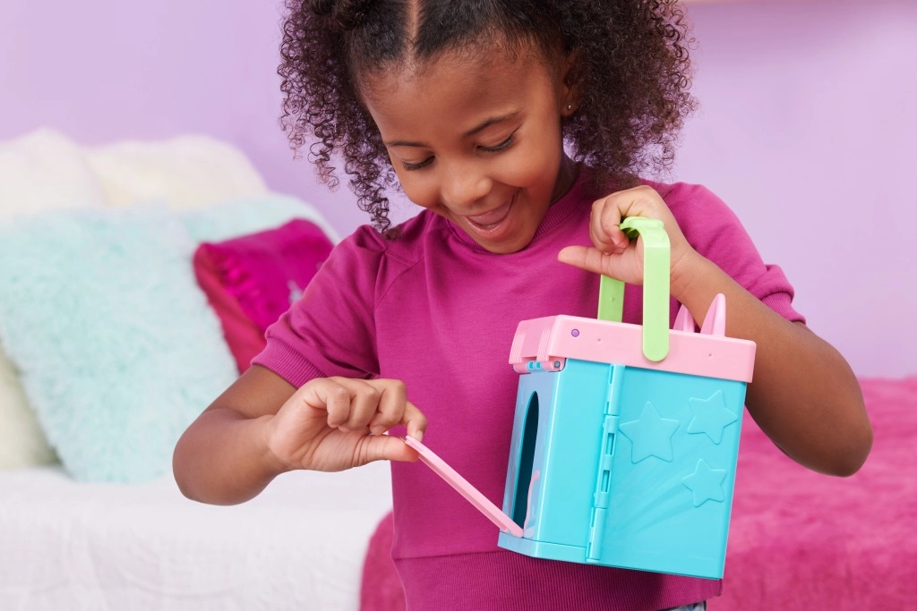 Set podporuje kreativitu a představivost dětí od 3 let a je kompatibilní s domečkem Gabby’s Purrfect Dollhouse pro rozšířené hraní. Kompaktní „kočičí“ kufřík slouží jako úložný organizér i přenosná scéna pro hraní kdekoli.