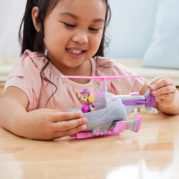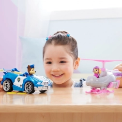 Set obsahuje modrý policejní vůz pro Chase a šedo‑růžový vrtulník pro Skye – připravené na každou misi.
