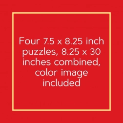 Vánoční puzzle s motivem vlaku přináší čtyři samostatné obrázky po 100 dílcích, které lze po sestavení spojit do jednoho dlouhého panoramatu. Díky kvalitnímu zpracování a přesně vyřezaným dílkům je skládání radostí pro děti i dospělé. Elegantní dárková krabička působí jako připravený dárek pod stromeček.