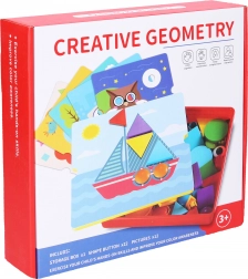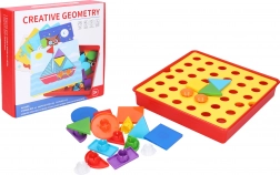 Kreativní mozaika s geometrickými tvary pro děti podporuje jemnou motoriku, logické myšlení a tvořivost. Balení obsahuje podložku 25 × 25 cm, 22 tvarů a 12 šablon pro snadné skládání obrázků.