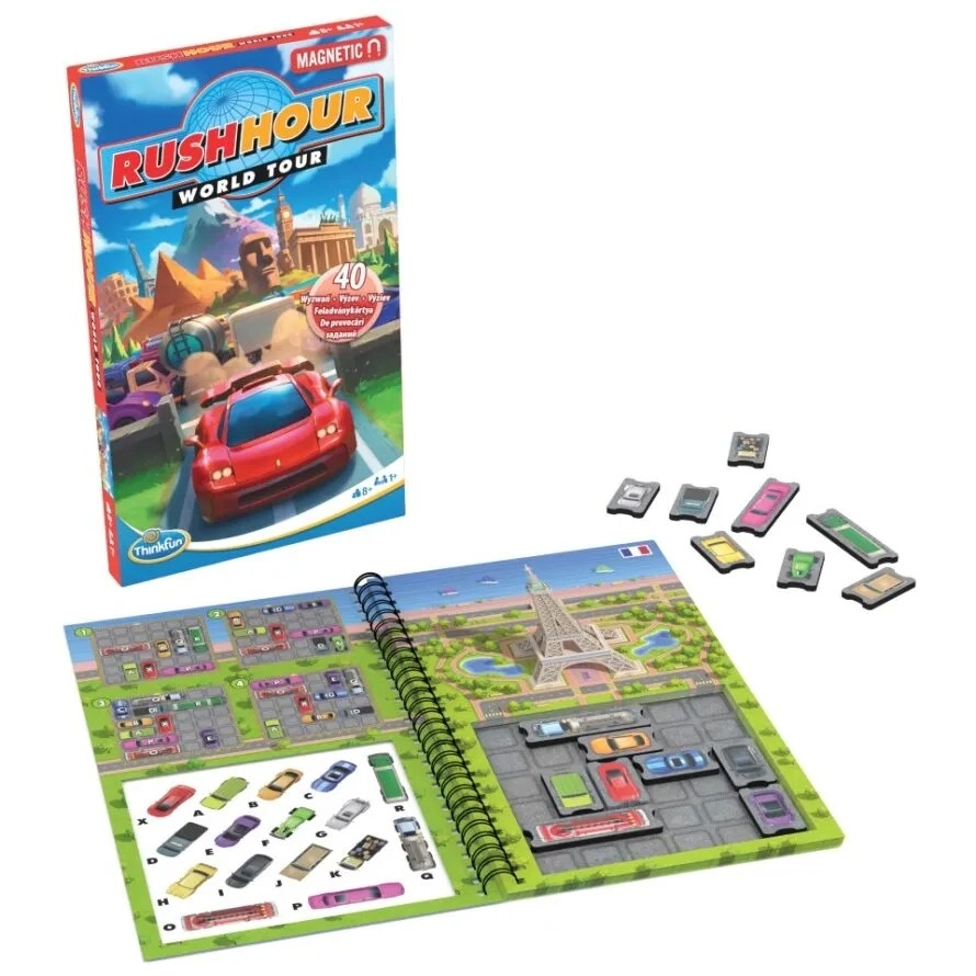 Oblíbená logická hra Rush Hour v magnetické cestovní verzi přináší desítky chytrých úloh, které postupně zvyšují obtížnost. Úkolem je podle zadání rozmístit vozidla do zácpy a poté chytře manévrovat tak, abyste uvolnili cestu cílovému autu. Díky magnetickým dílkům zůstává vše pevně na desce – perfektní do auta, vlaku i letadla.