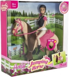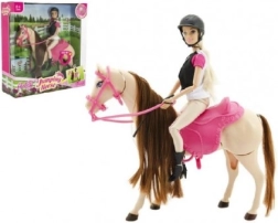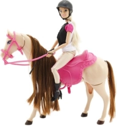 Panenka má krásné dlouhé vlasy a nechybí jí jezdecká helma. Oblečená je do jezdeckých kalhot, trika a vysokých kozaček. Koníček se může pochlubit bujnou hřívou a růžovým postrojem se sedlem. Po stisknutí tlačítka se koník pohybuje.