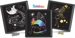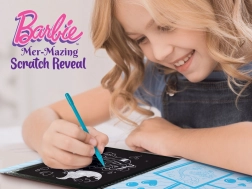 Objevte kouzlo barev s Barbie v úchvatném fantasy stylu díky Zdrapávacímu skicáku. Použijte přiložené pero k odhalení živých barev duhy skrytých pod černým povrchem.